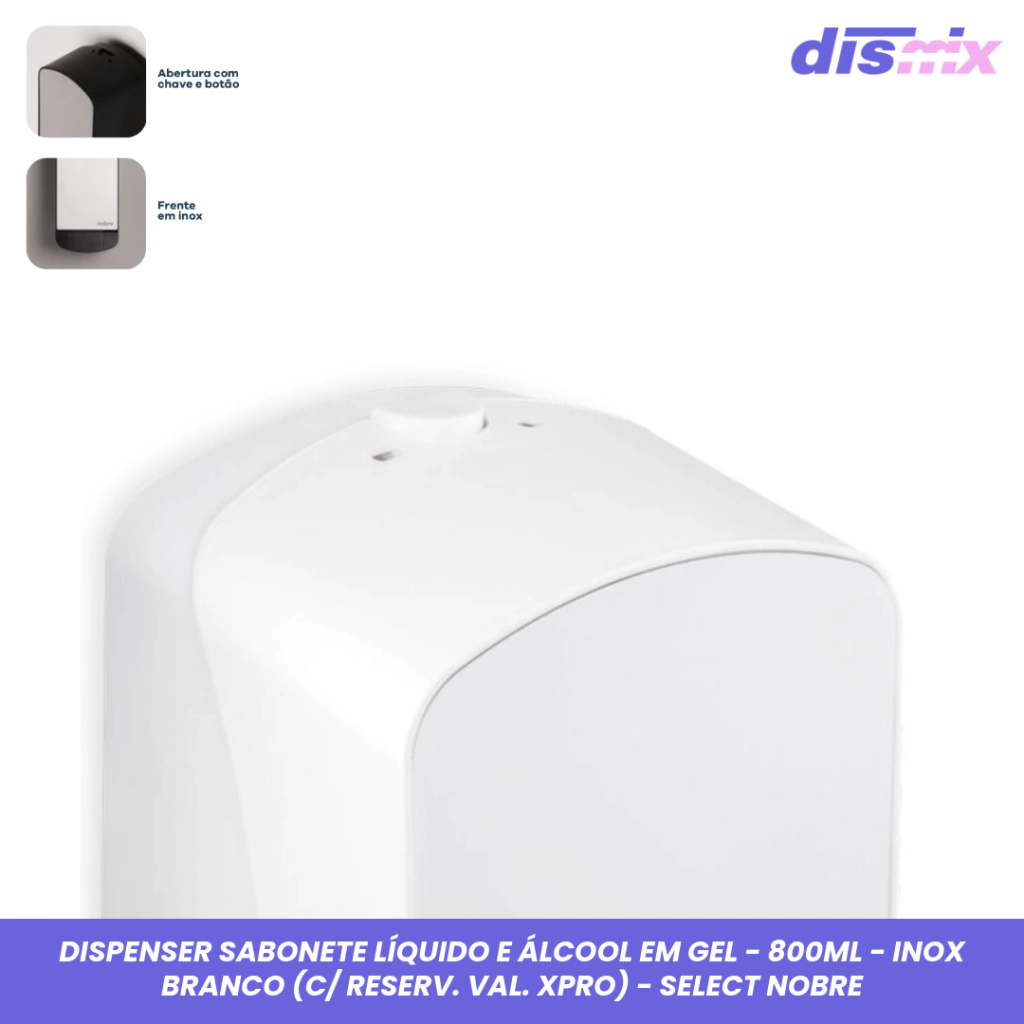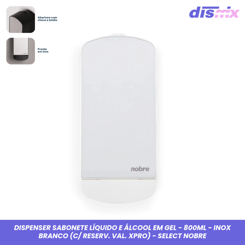 Com um design moderno e acabamento inox branco, esta saboneteira se adapta a diversos ambientes, oferecendo economia e proteção no uso de álcool em gel ou sabonete líquido.
